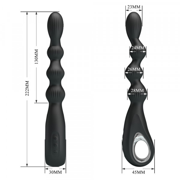 Выполнен вибратор из 4 рельефных звеньев, что значительно увеличивает градус возбуждения при возвратно-поступательных движениях! Каплевидная головка обеспечивает плавное введение, а специальное кольцо позволяет совершать возвратно-поступательные движения!