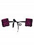 Выпол­нены наруч­ники из мяг­кого плот­ного атласа и покрыты цве­точ­ным кру­же­вом чер­ного цвета. Наруч­ники на липуч­ках, а между собой соеди­нены атлас­ной лентой