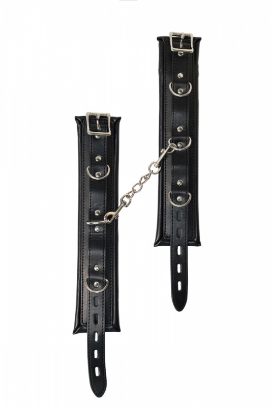 Выполнены оковы из высококачественной экокожи в черном цвете. Регулируемые, что позволяет добиться идеальной фиксации. Застегиваются при помощи ремешков. Между собой соединяются металлической цепью