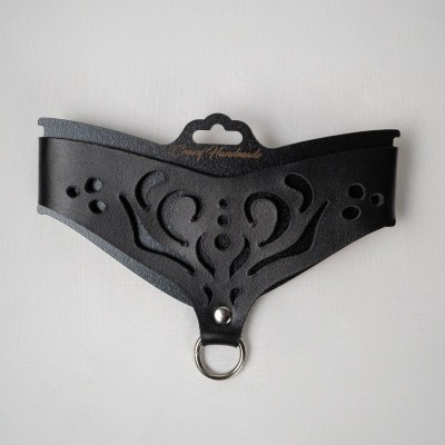 Восхитительный ошейник с фигурными вырезами из коллекции "Crazy Handmade" - невероятный женский аксессуар, предназначенный для самых провокационных игр в стиле БДСМ!