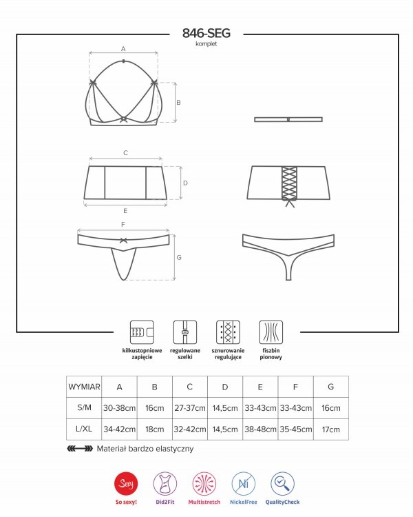 Комплект белья "Obsessive" лиф, трусики, корсаж, L/XL