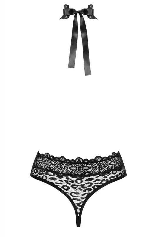 Минималистичное боди из коллекции "Obsessive" - лучший вариант для создания сверх соблазнительного образа! Боди выполнено в виде трусиков-слипов с высокой посадкой и кружевной ленты проходящей по телу... Лента на шее образует чокер и завязывается сзади