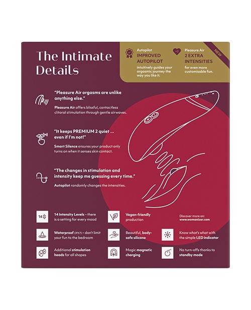 Стимулятор клитора "Womanizer Premium 2" с интеллектом и автопилотом, красный