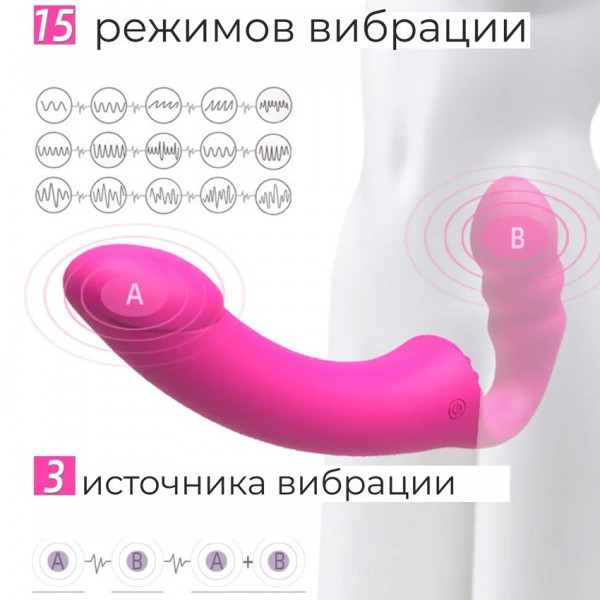Страпон имеет 15 различных, невероятно мощных режимов вибрации и 2 мотора, что позволяет испытать обоим партнерам все уровни наслаждений! Управлять вибрацией легко и просто при помощи специальной кнопки, либо с дистанционного пульта управления