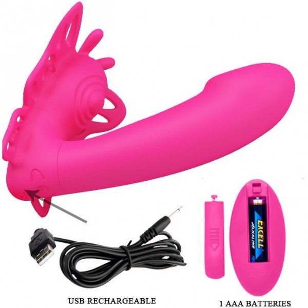Вибратор перезаряжаемый, что подчеркивает его уникальную мощность. Зарядное устройство с USB-разъемом входит в комплект. Пульт управления работает от батареек