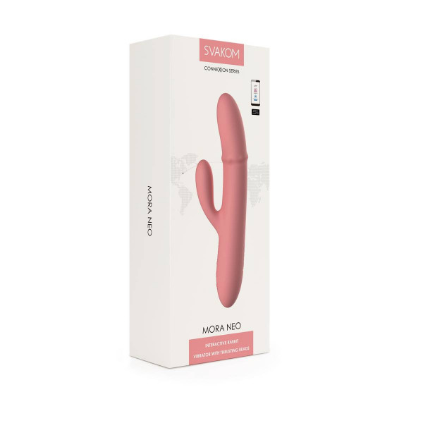 Вибратор с движением бусин в стволе и клиторальным стимулятором "Svakom Mora Neo" + приложение, коралл